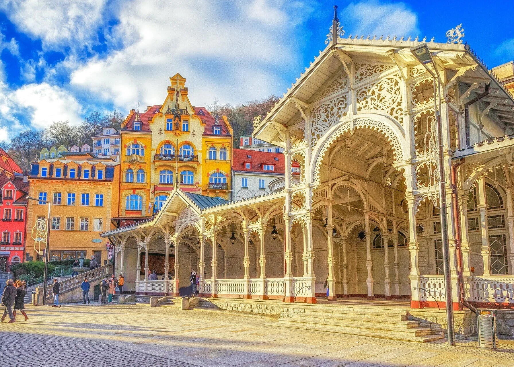 We are situated in the historic center of Karlovy Vary - a city one of the Great Spas of Europe and a city that is considered to for UNESCO world heritage. You can find many hots springs almost at the doorstep of our apartments. We offer hotel-like comforts, clean and bright apartments and a stunning view of the main stone colonnade.